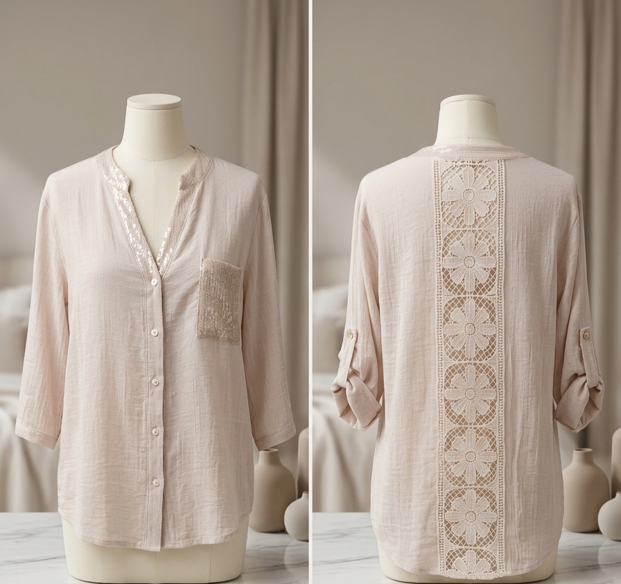 Chemisier manche 3/4 matière 65% coton 35% poliestere